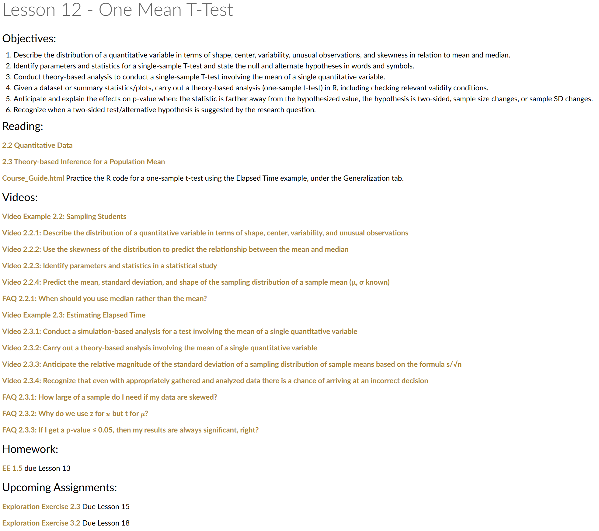 - Exploration Exercise 1.5: Due at 0700 on Lesson 13