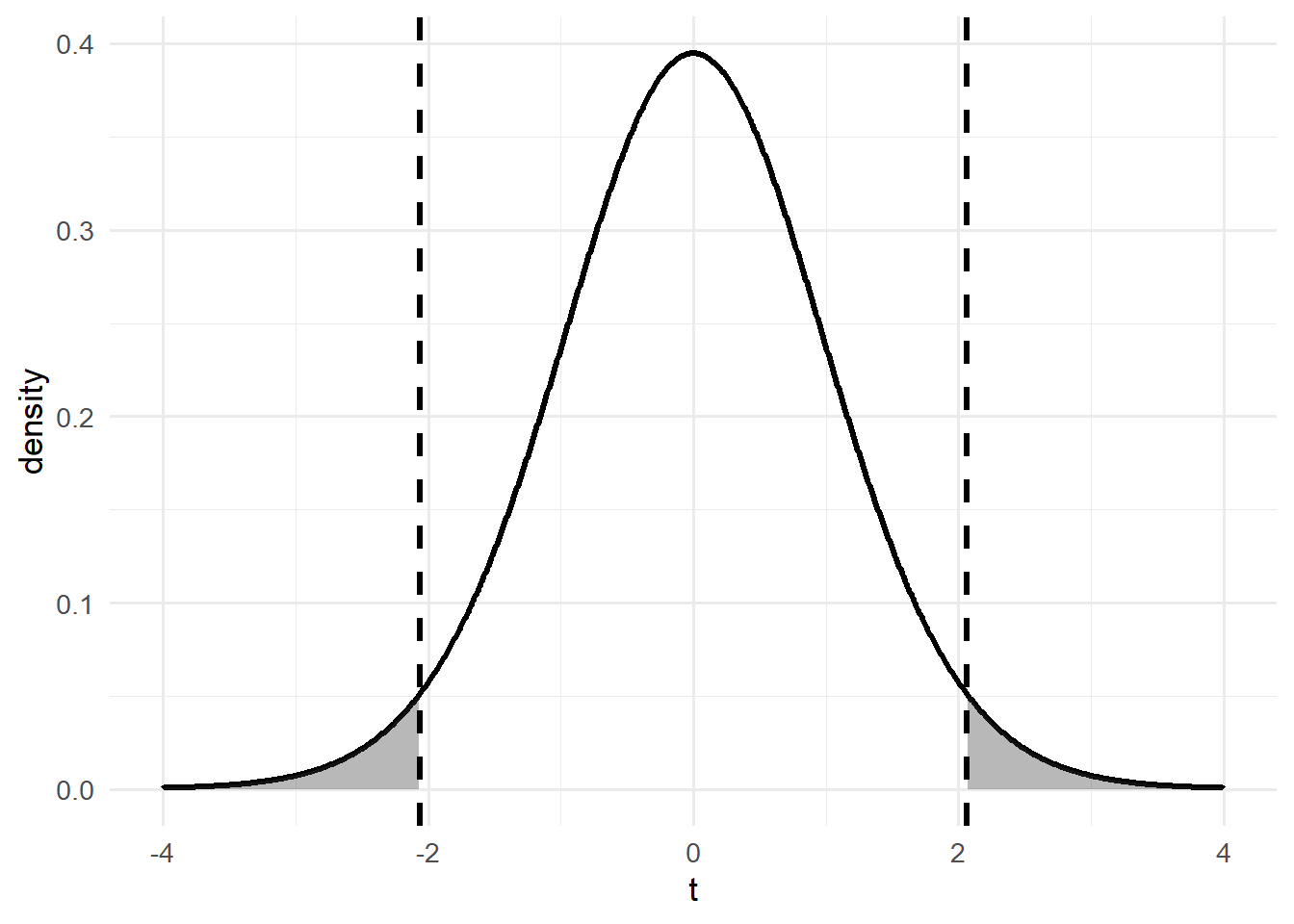 | \(H_A: \mu \neq \mu_0\) | \(p = 2 \cdot (1 - F_{t_{df}}(|t|))\) | p_val <- 2 * (1 - pt(abs(t_stat), df)) |