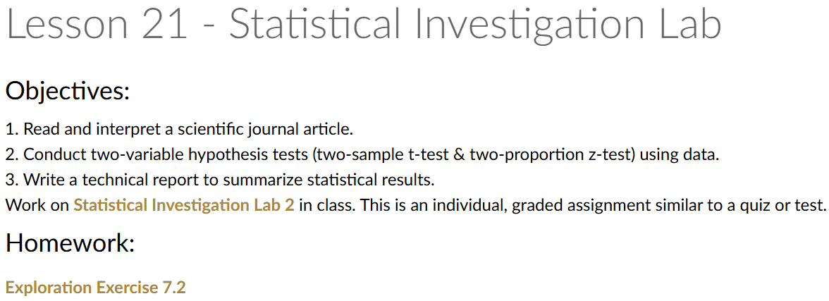 Lesson 21: Statistical Investigation Lab