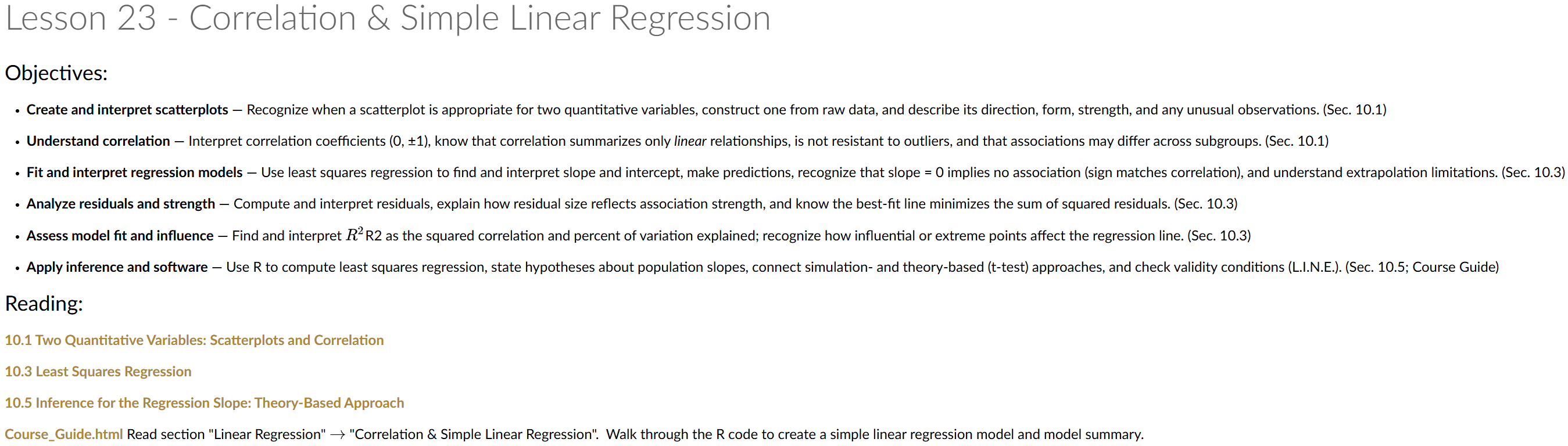 Lesson 23: Correlation & Simple Linear Regression