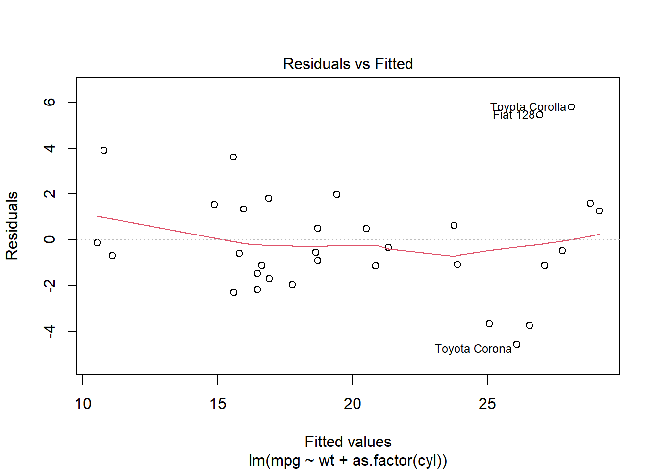 lm(formula = mpg ~ wt + as.factor(cyl), data = mtcars)