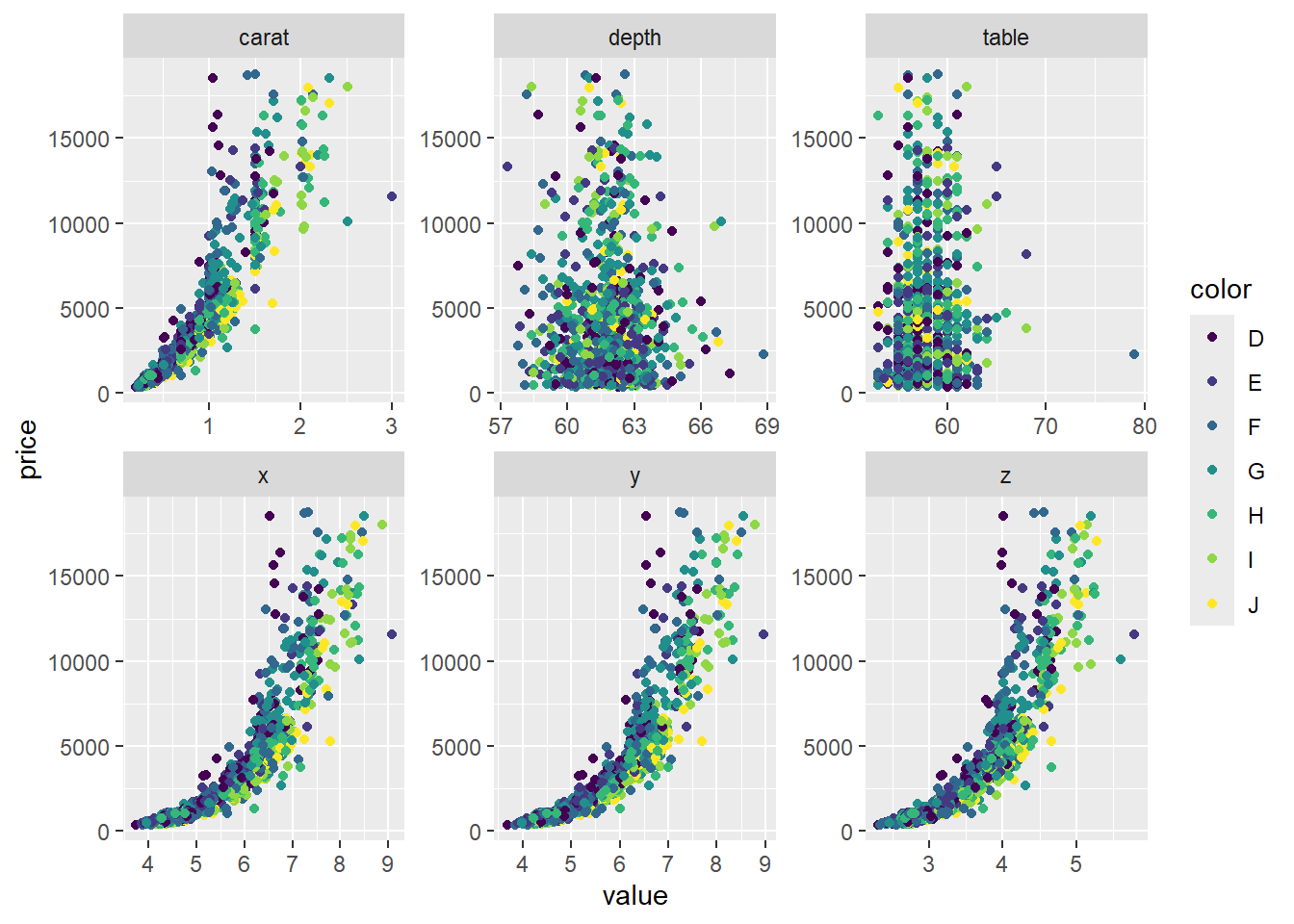 ggplot(diamonds, aes(x = carat, y = price, color = cut)) +