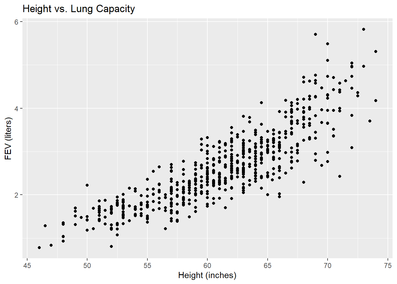labs(x = "Height (inches)", y = "FEV (liters)",