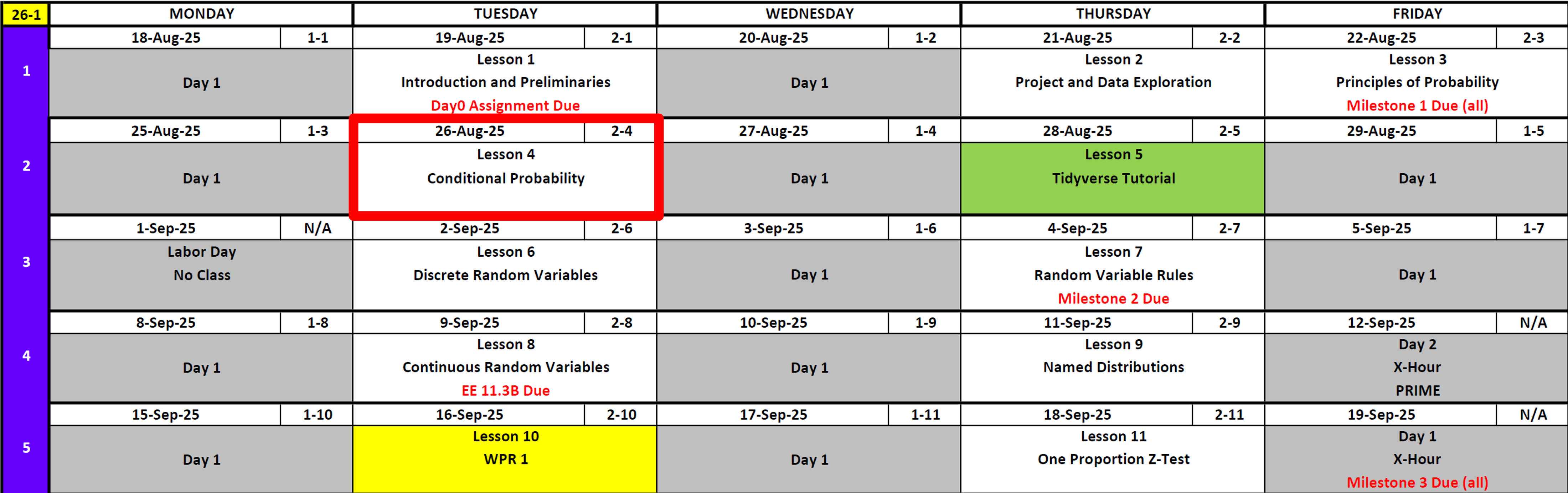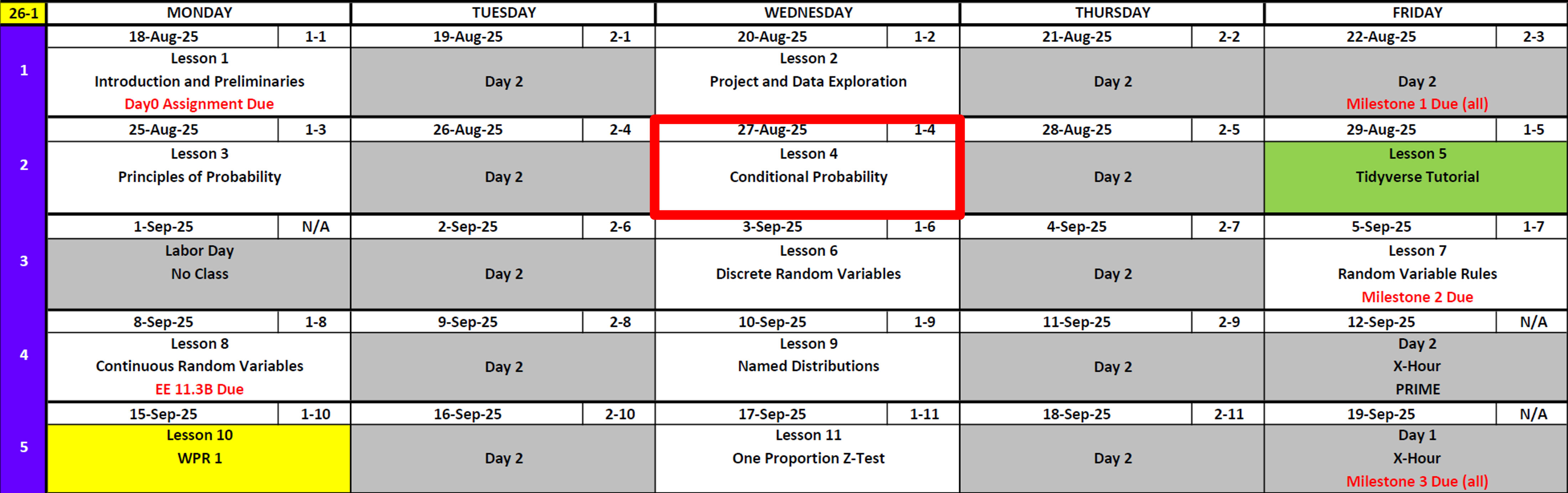 Build the 2×2 probability table with rows “spam / not spam” and columns “flagged / not flagged.” Fill in each cell with the corresponding probability, and verify that row and column totals match your earlier results and that the four cells sum to 1.