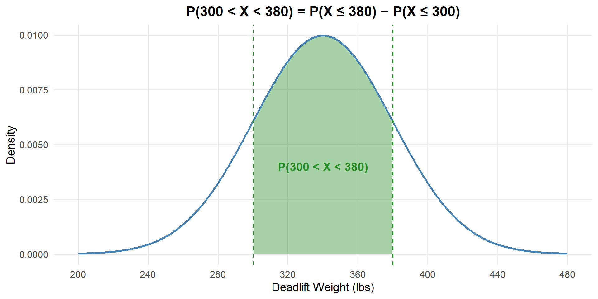 - The proportion in Medium is \(P(36.34 \leq X \leq 40.66) = 0.75 - 0.25 = 0.50\).