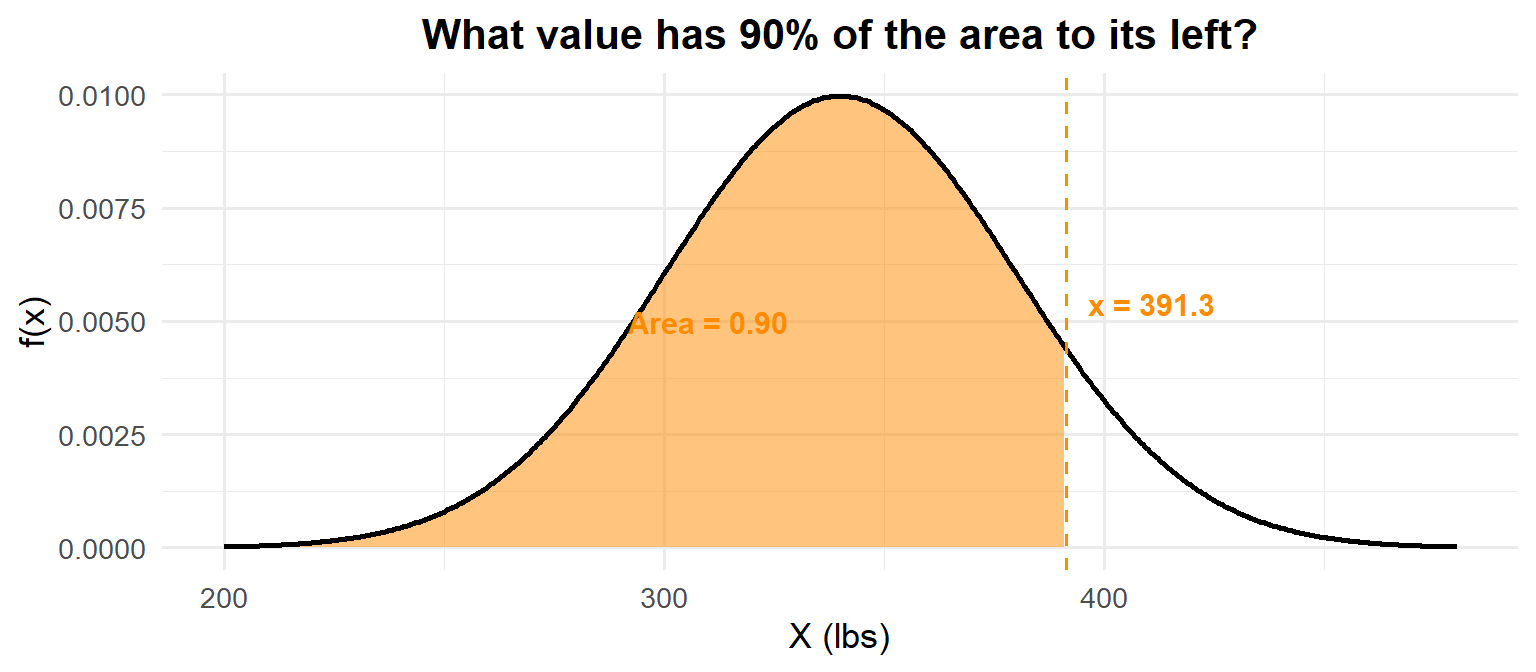 What deadlift separates the top 10%? We need \(P(X \leq x) = 0.90\).