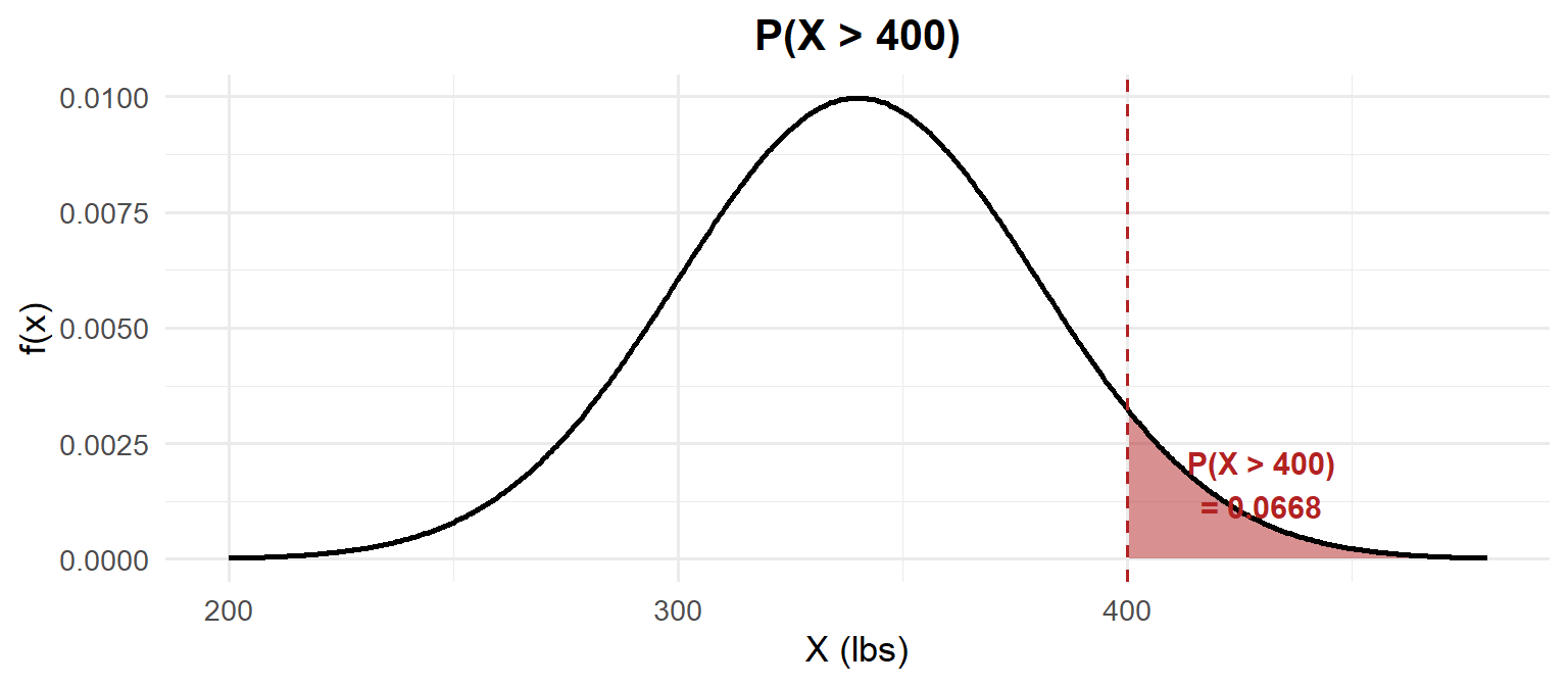 Let’s redo the same deadlift examples (\(X \sim N(340, 40^2)\)) — this time by hand.