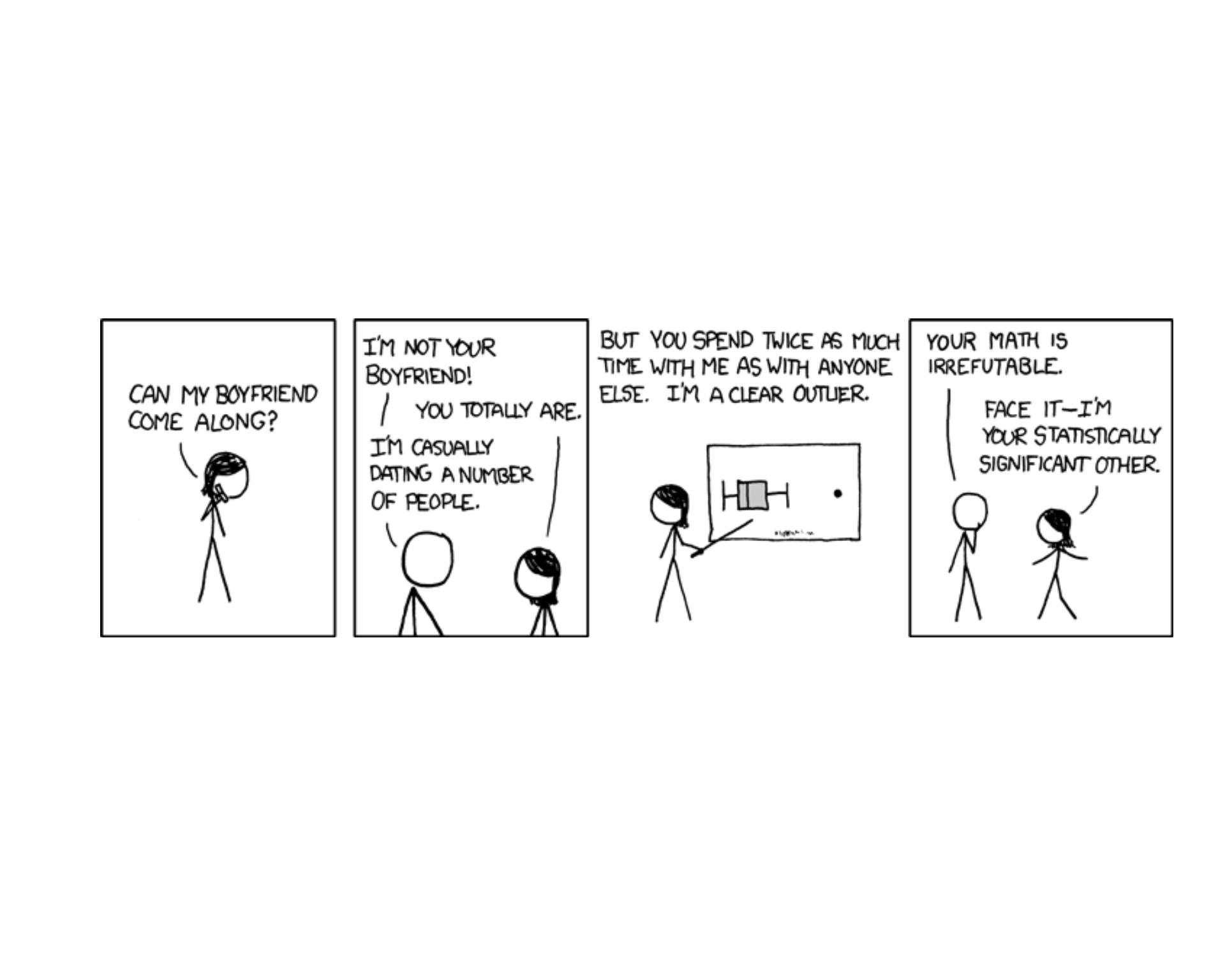 - Proportions: Same four steps, but use \(z = \frac{\hat{p} - p_0}{\sqrt{p_0(1-p_0)/n}}\)