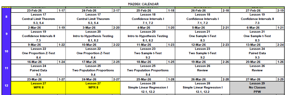 - WebAssign 8.4, 9.2 - Due before Lesson 23