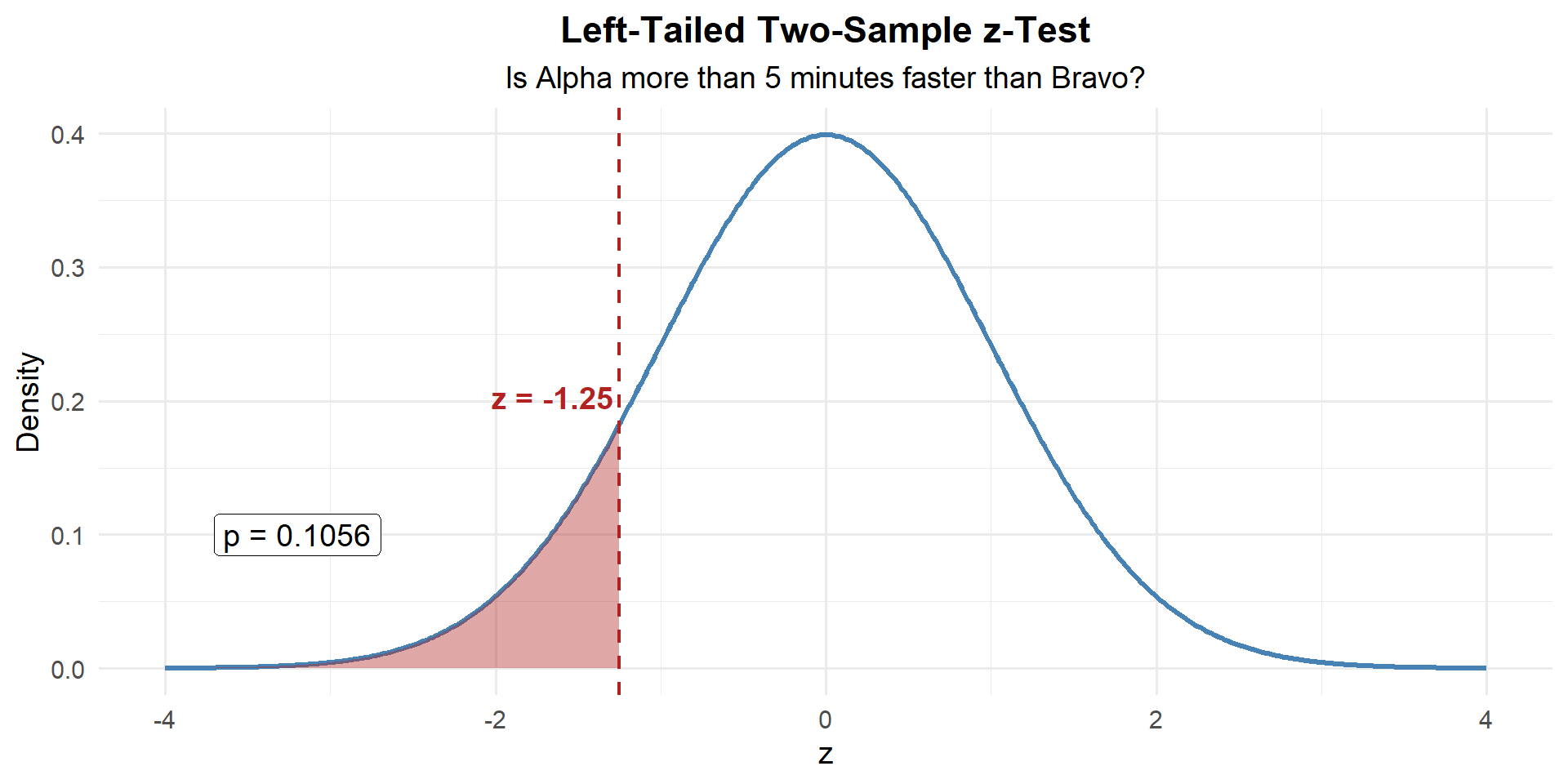 | Two-tailed \(p\)-value | 2*(1 - pnorm(abs(z))) |