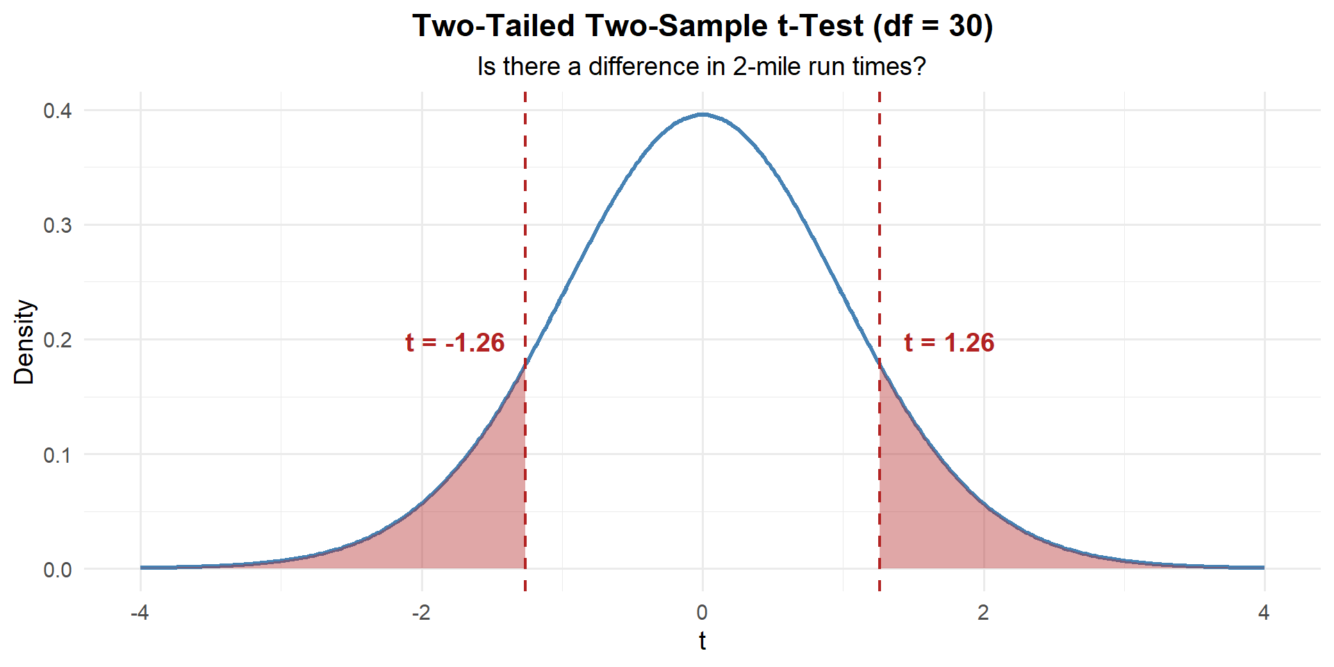 The fix? Use the \(t\)-distribution, which has heavier tails to account for that uncertainty. Same idea as switching from \(z\) to \(t\) for a one-sample test when \(\sigma\) is unknown and \(n\) is small.