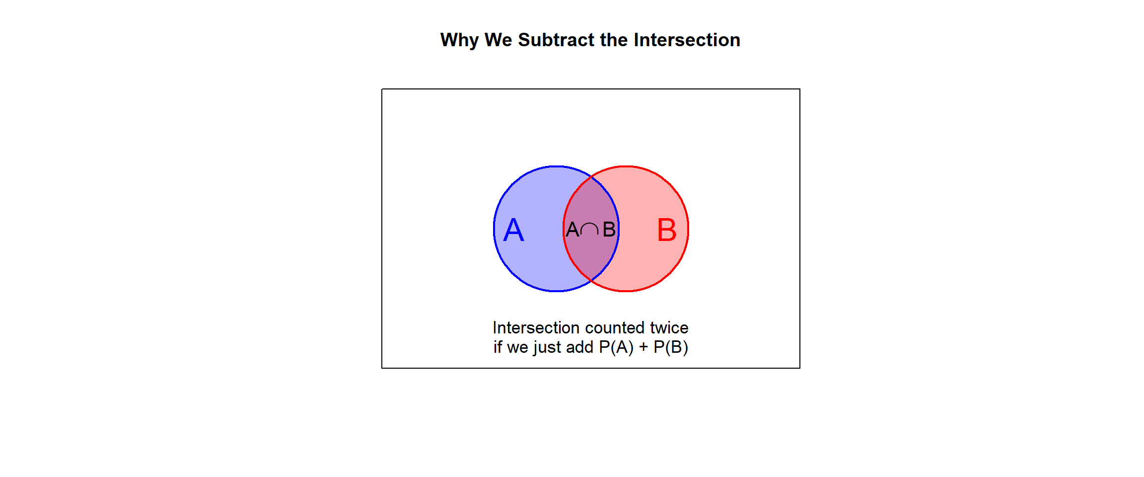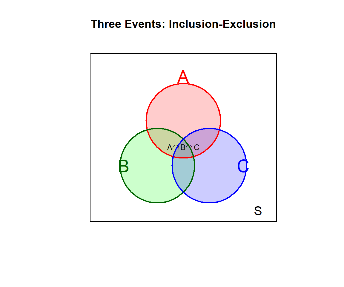 This alternating add/subtract pattern is called the Inclusion-Exclusion Principle. It ensures we count each outcome exactly once.